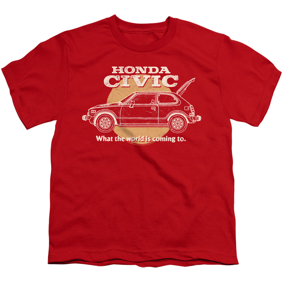 Celebrate classic style with this youth short sleeve featuring a bold 'Honda/Civic Coming World' design. Made with soft, breathable fabric in red, this shirt delivers comfort and cool for any fan.