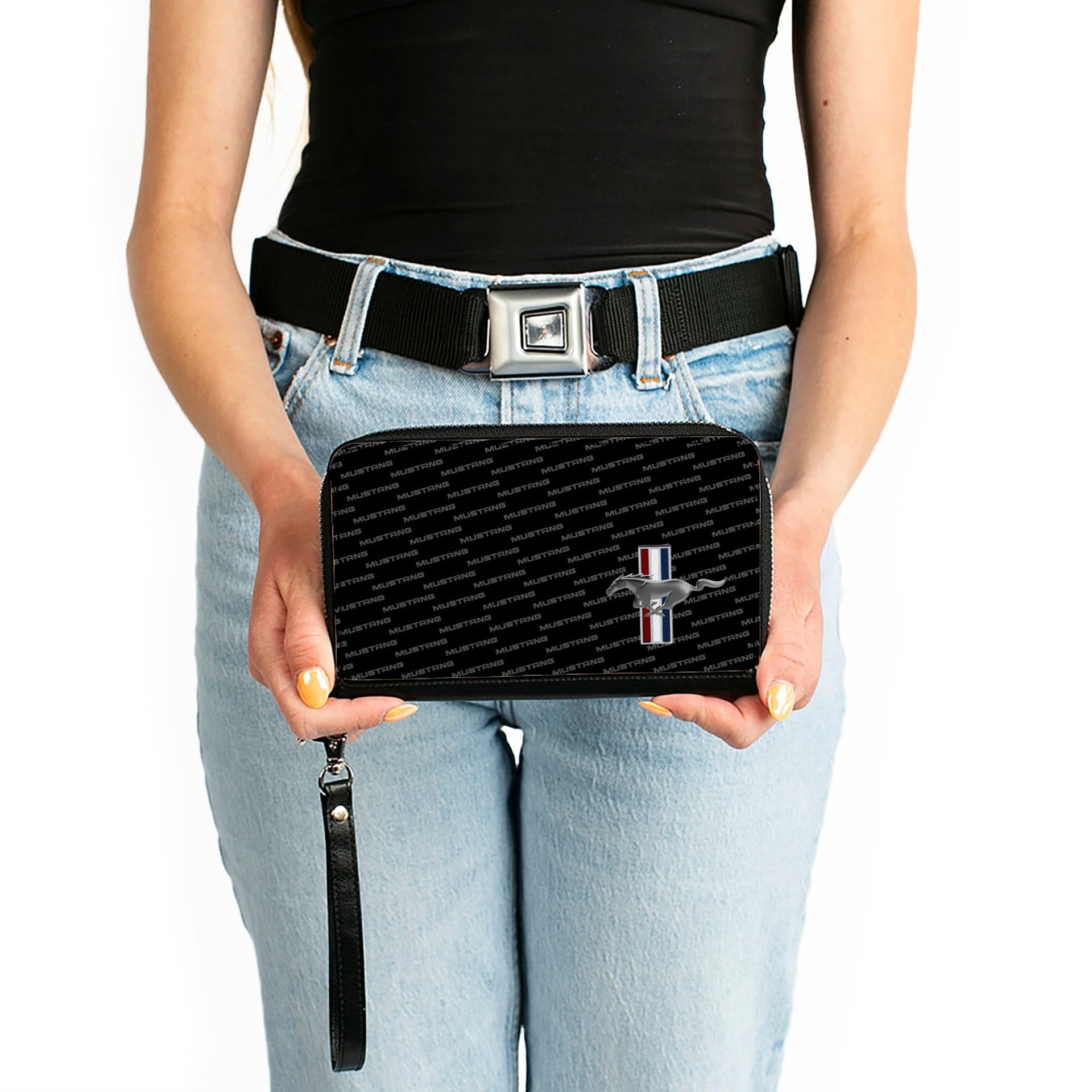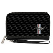 Ford Mustang Tri-Bar w/Text Black PU Zip Around Wallet Rectangle