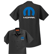 This Mopar Mechanic Shirt delivers a bold, professional look with unmistakable Mopar attitude. Featuring a large Mopar logo across the back and a coordinating chest logo on the front, this button-down work shirt blends shop-ready durability with muscle car pride.