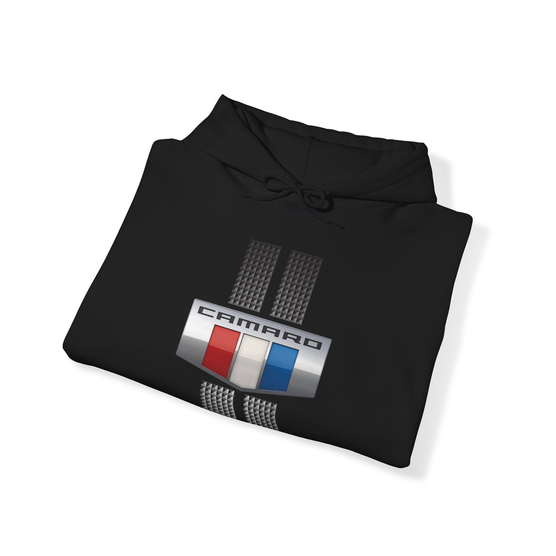 Choose this Camaro 3 Color Carbon Badge Fleece Hoodie and enjoy all it has to offer. This unisex heavy blend hooded sweatshirt is relaxation itself. Made with a thick blend of cotton and polyester, it feels plush, soft and warm, a perfect choice for any cold day. In the front, the spacious kangaroo pocket adds daily practicality while the hood's drawstring is the same color as the bas. It's soft, comfy, and can be easily styled with a pair of jeans and sneakers for a cozy, yet stylish look. Perfect for any Camaro Fan!