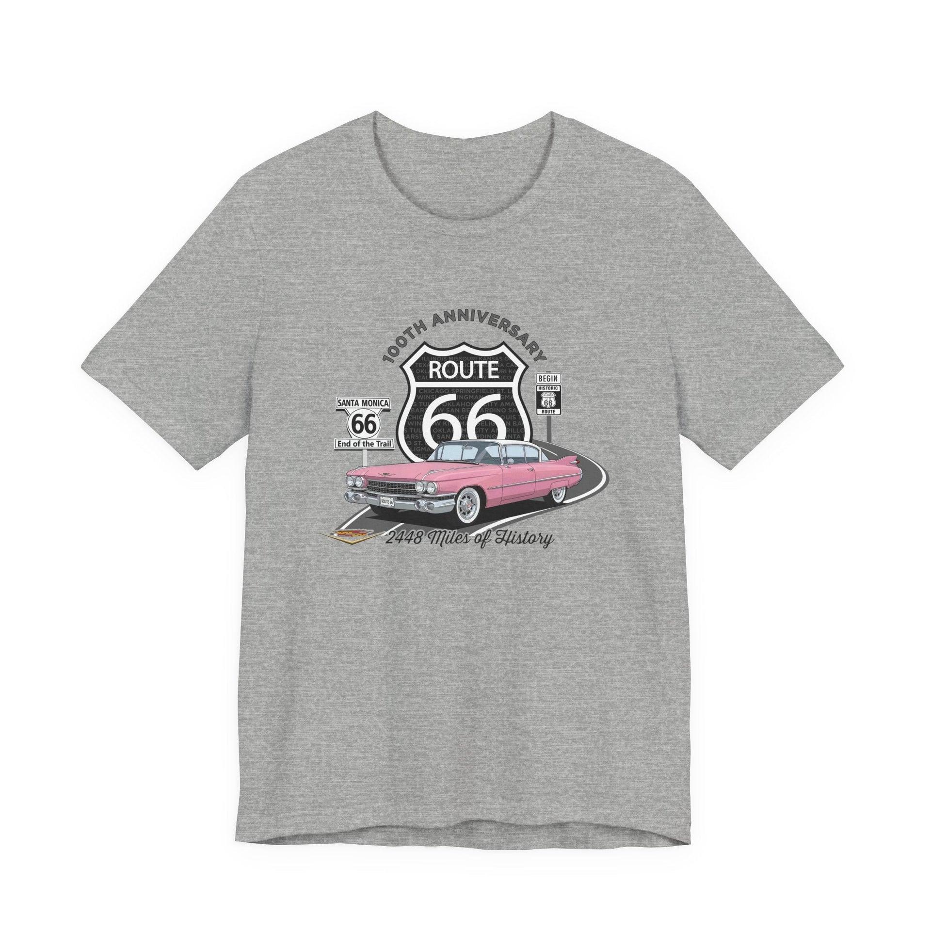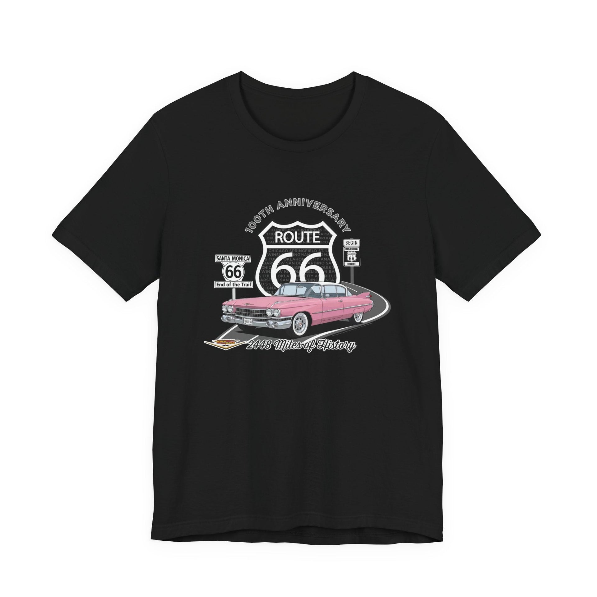Pink Cadillac Route 66 Tee – 100th Anniversary Legends of the Road Retro Graphic T-Shirt