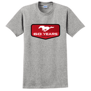 Celebrate six decades of an American classic with our officially licensed Ford Mustang 60th Anniversary T-Shirt. Crafted from premium 100% cotton in sport gray, this tee offers superior comfort and style. Featuring the exclusive Ford Mustang 60th logo, this shirt is a must-have for any Mustang enthusiast. Commemorate the legacy of the Mustang with this high-quality, timeless piece, perfect for any casual occasion.
