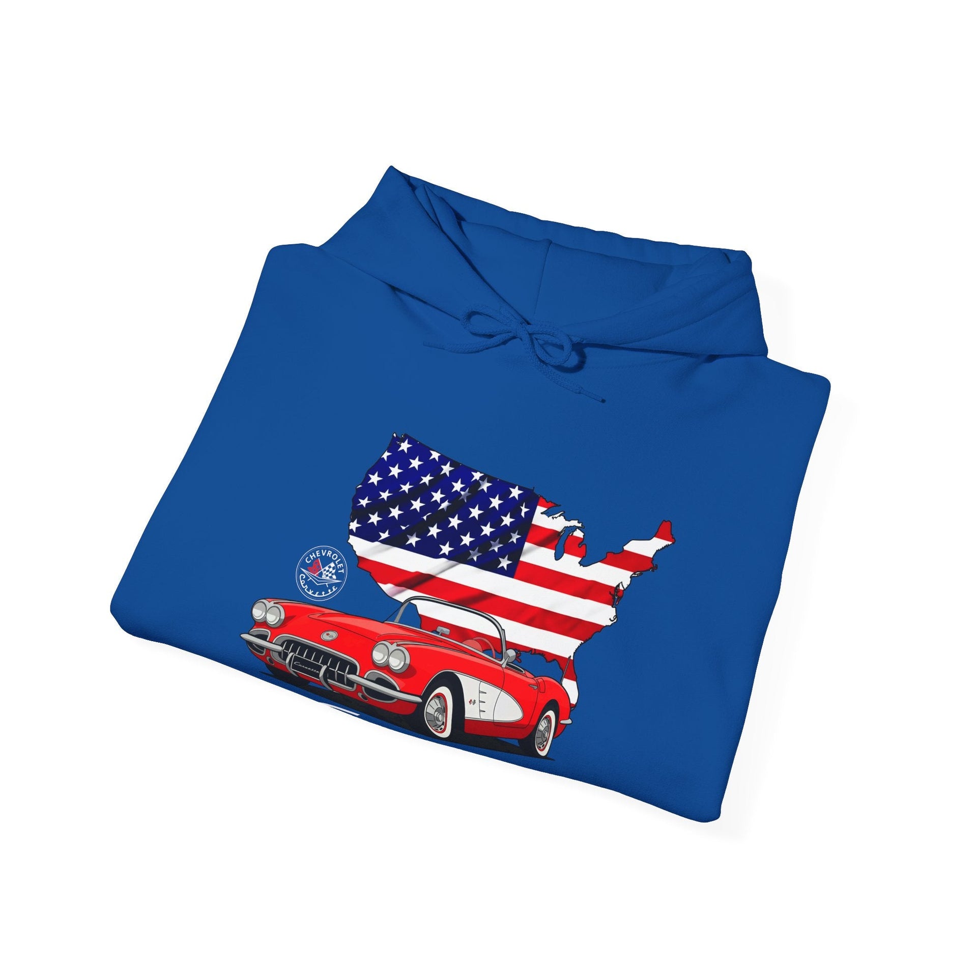 C1 Corvette American Flag Cotton Blend Hooded Sweatshirt – Legends of the Road, Perfect for the Corvette Fan