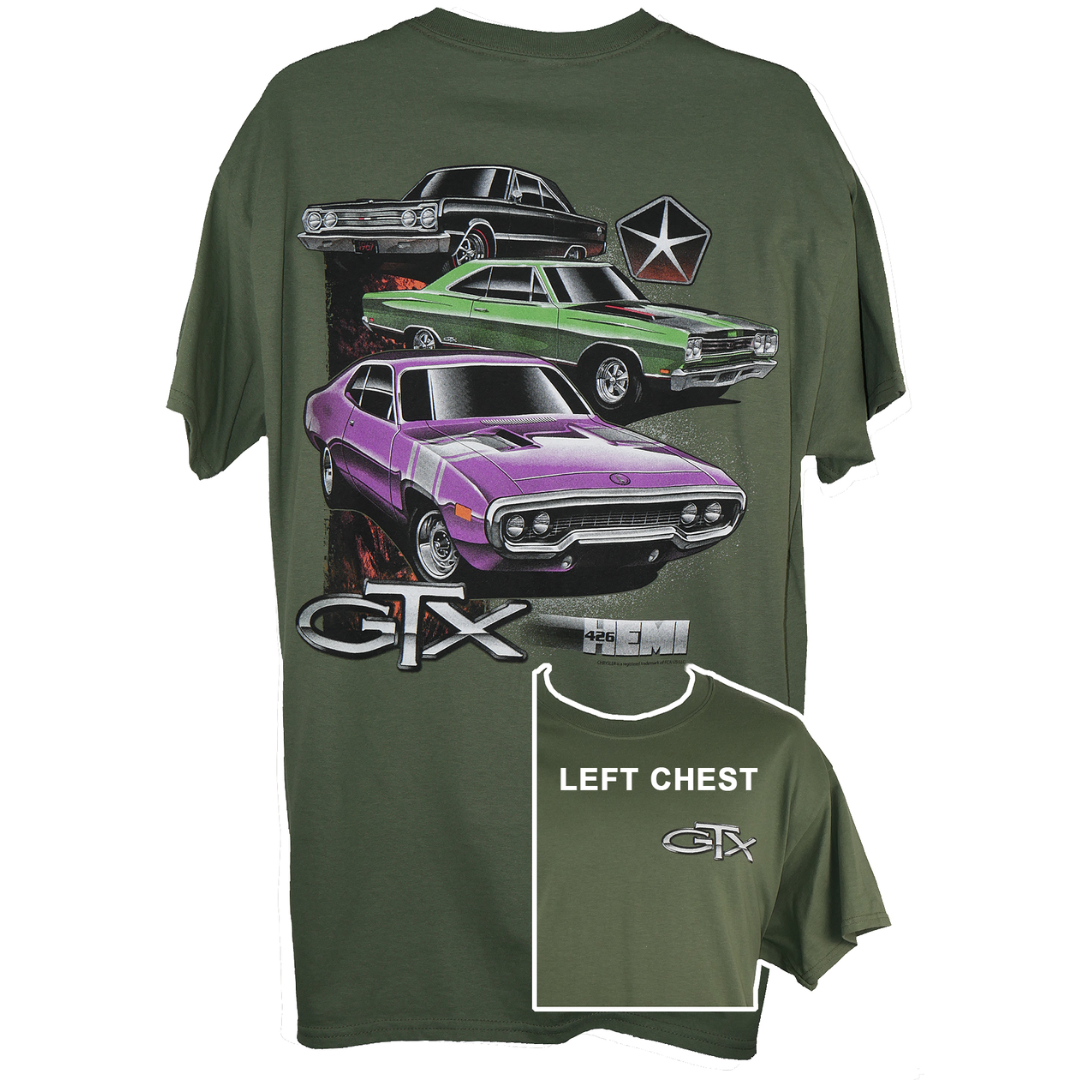 Refresh your wardrobe with our officially licensed Plymouth GTX T-Shirt, crafted from premium green 100% cotton. This stylish tee features a vintage-inspired Plymouth GTX design, making it essential for any classic car enthusiast. Celebrate the legacy of the Plymouth GTX with this high-quality, comfortable shirt, perfect for any casual occasion.