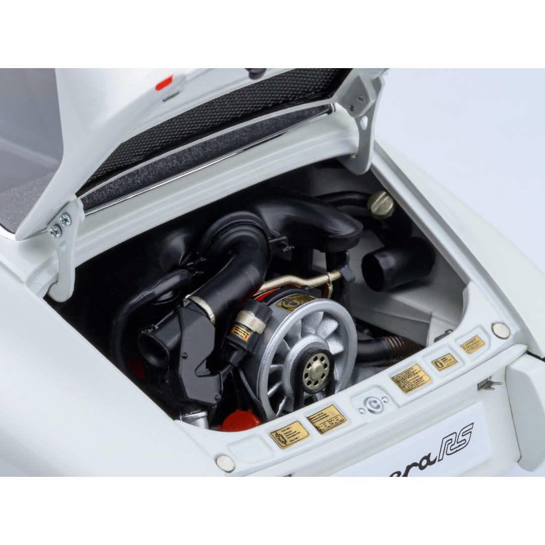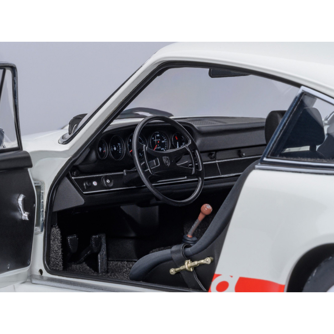 Brand new 1/18 scale car model of Porsche 911 Carrera 2.7 RS Grand Prix White with Red Stripes and Wheels model car by Autoart.