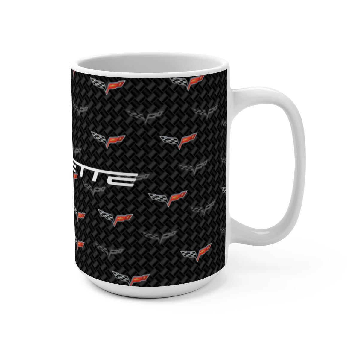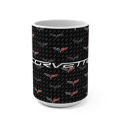 Corvette C6 15oz Ceramic Mug – Corvette Script & C6 Logos on Carbon Background, Perfect Corvette Fan Gift