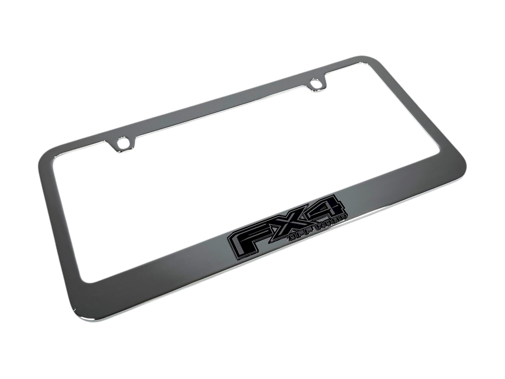 - Easy Installation: Designed for simple installation, the Ford FX4 Monochromatic Chrome License Plate Frame comes with all necessary mounting hardware. You won't need special tools or professional help – just a few minutes and you're done!