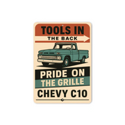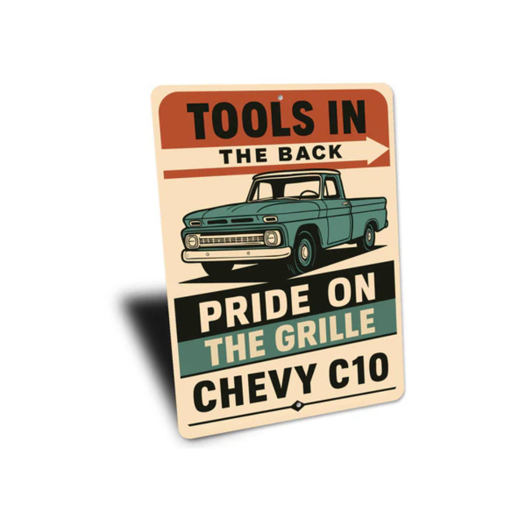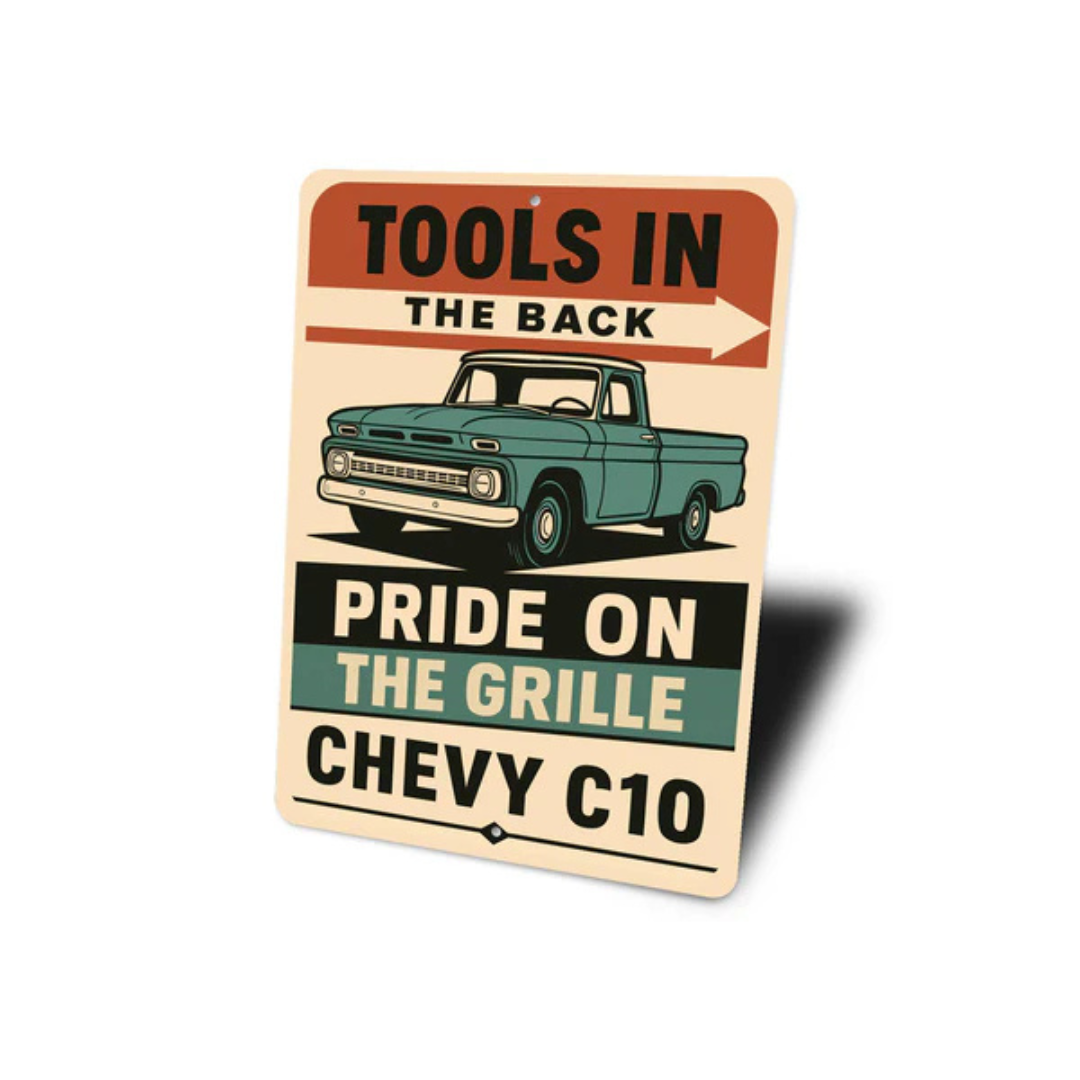 This Chevy C10 Tools In The Back Pride On The Grille Sign makes a great gift!