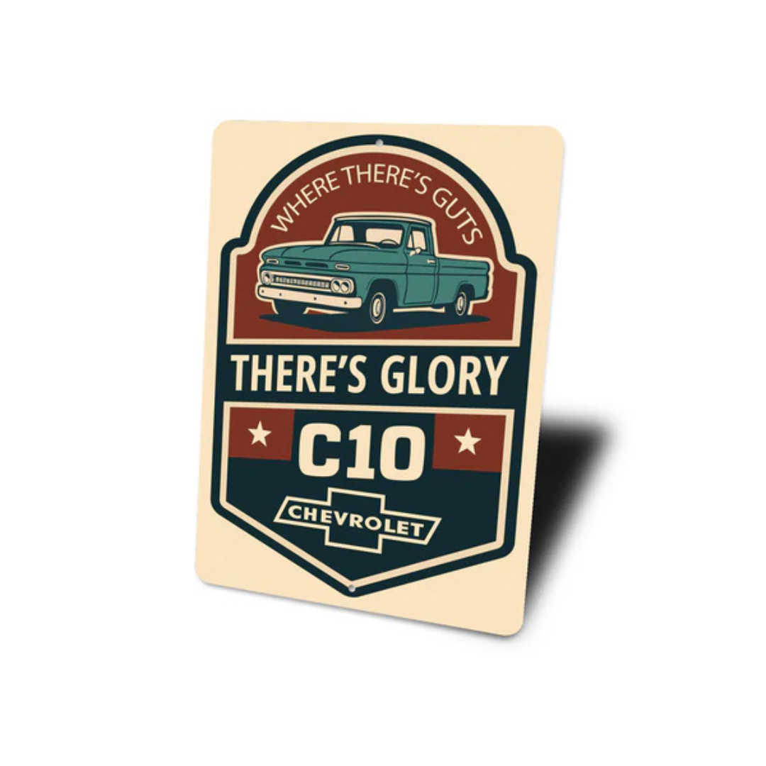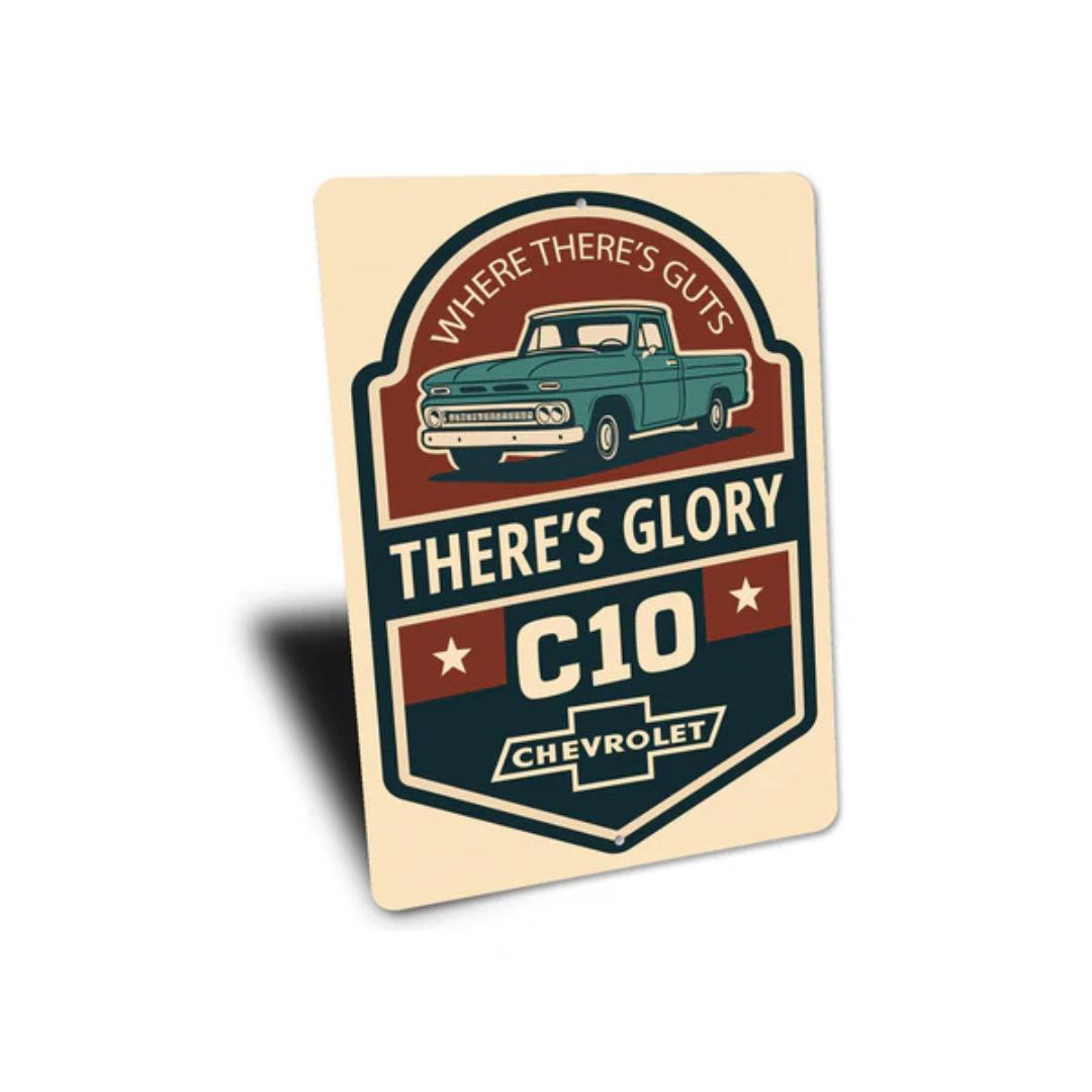 This Chevy C10 Where There's Guts There's Glory Chevrolet Sign makes a great gift!