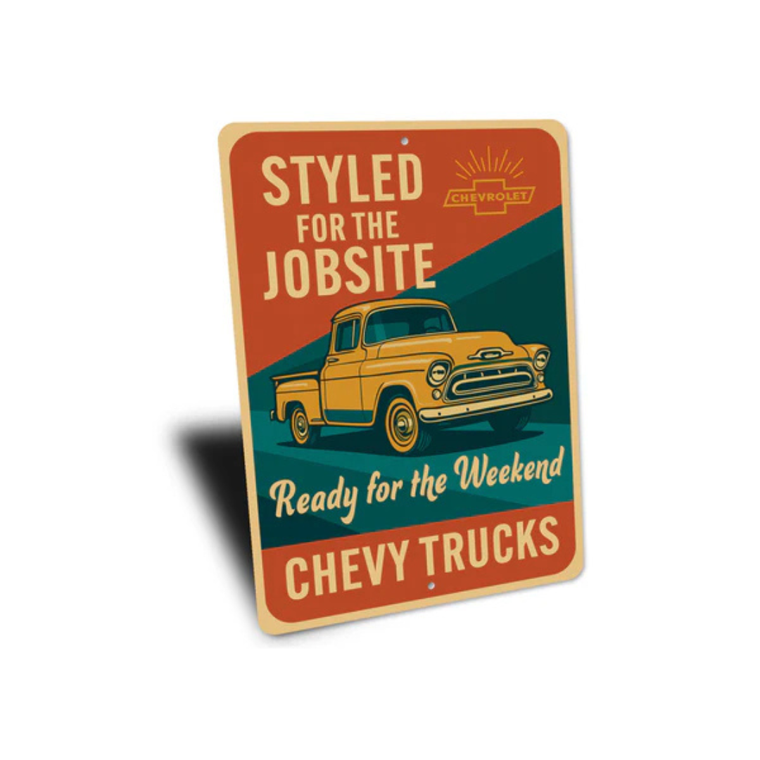 Chevy Truck Styled For Jobsite Ready For The Weekend Sign