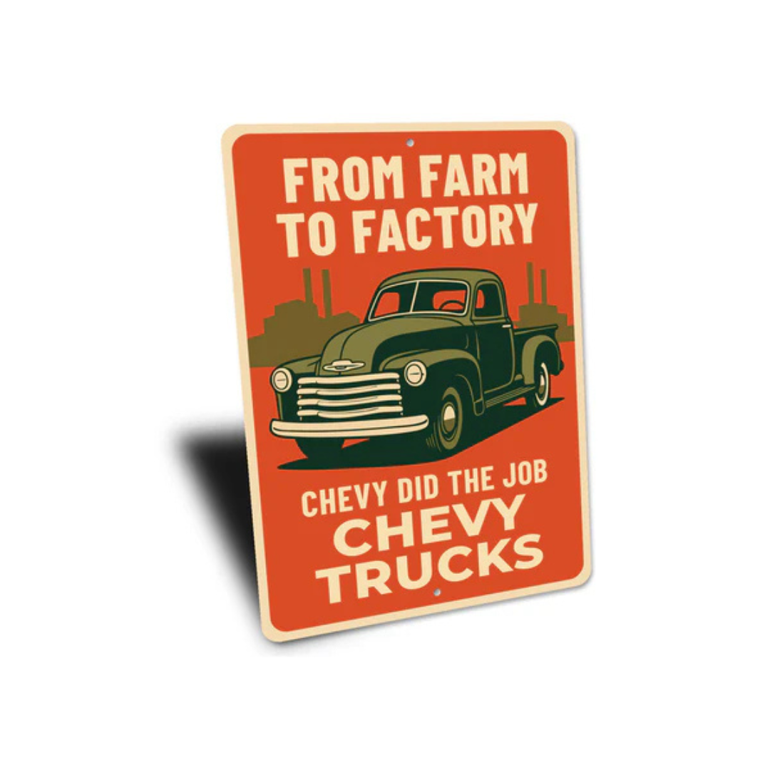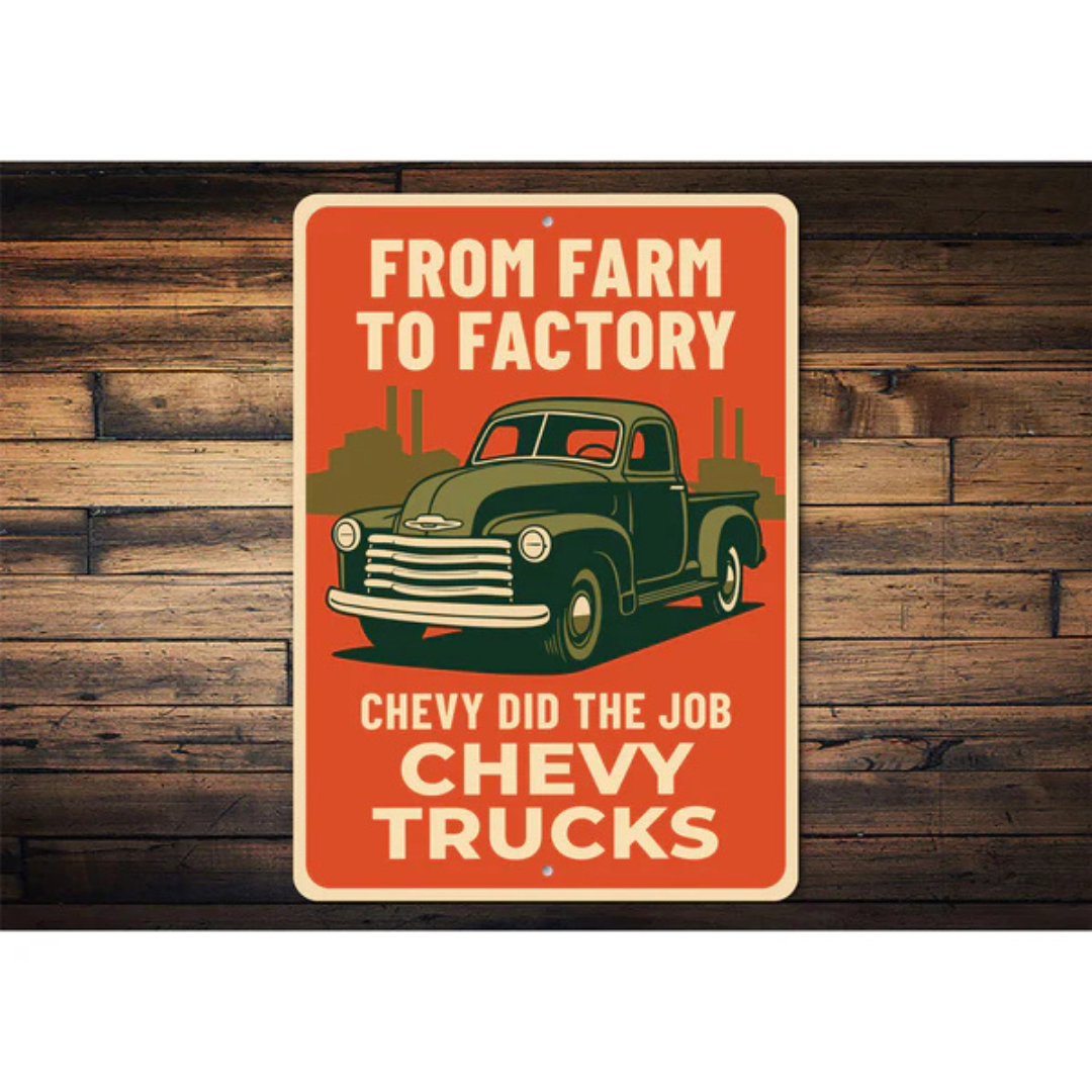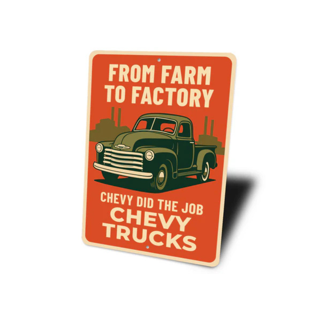 This Chevy Trucks From Farm To Factory Chevy Did The Job Sign makes a great gift!