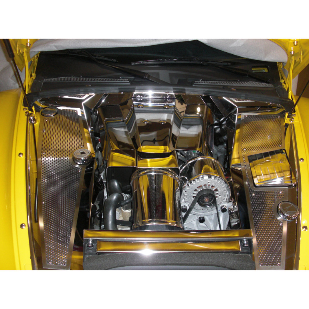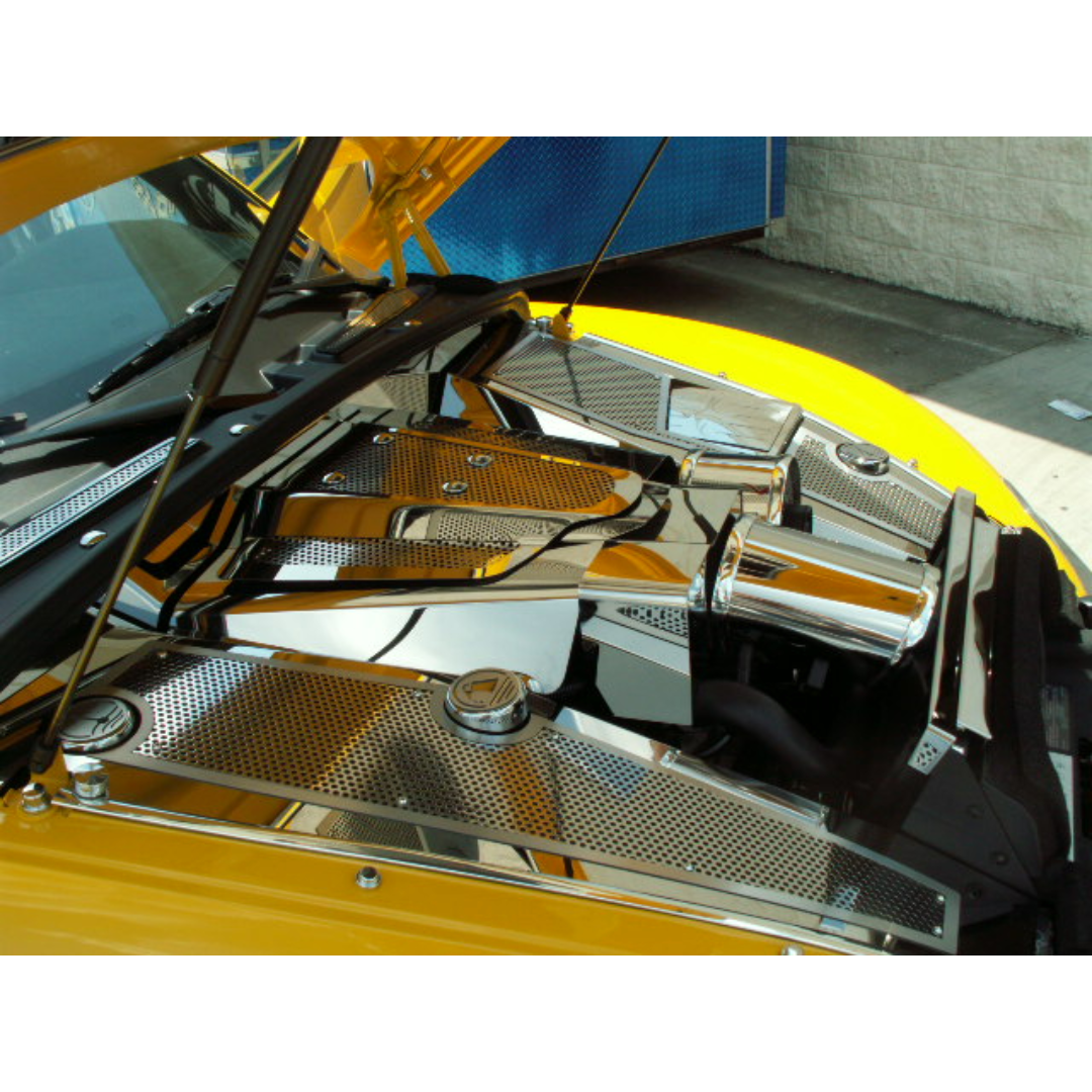 - 5 Triple-chrome plated steel caps with brushed finish laser-cut icon symbol top plates.