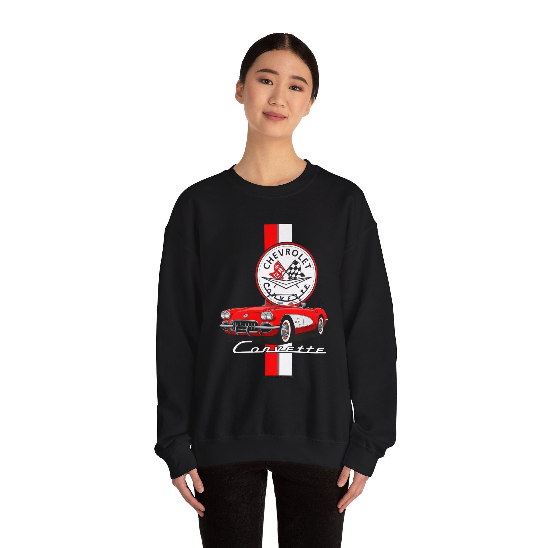 C1 Corvette Vertical Stripe Emblem Cotton Blend Sweatshirt – Legends of the Road, Perfect for the Corvette Fan
