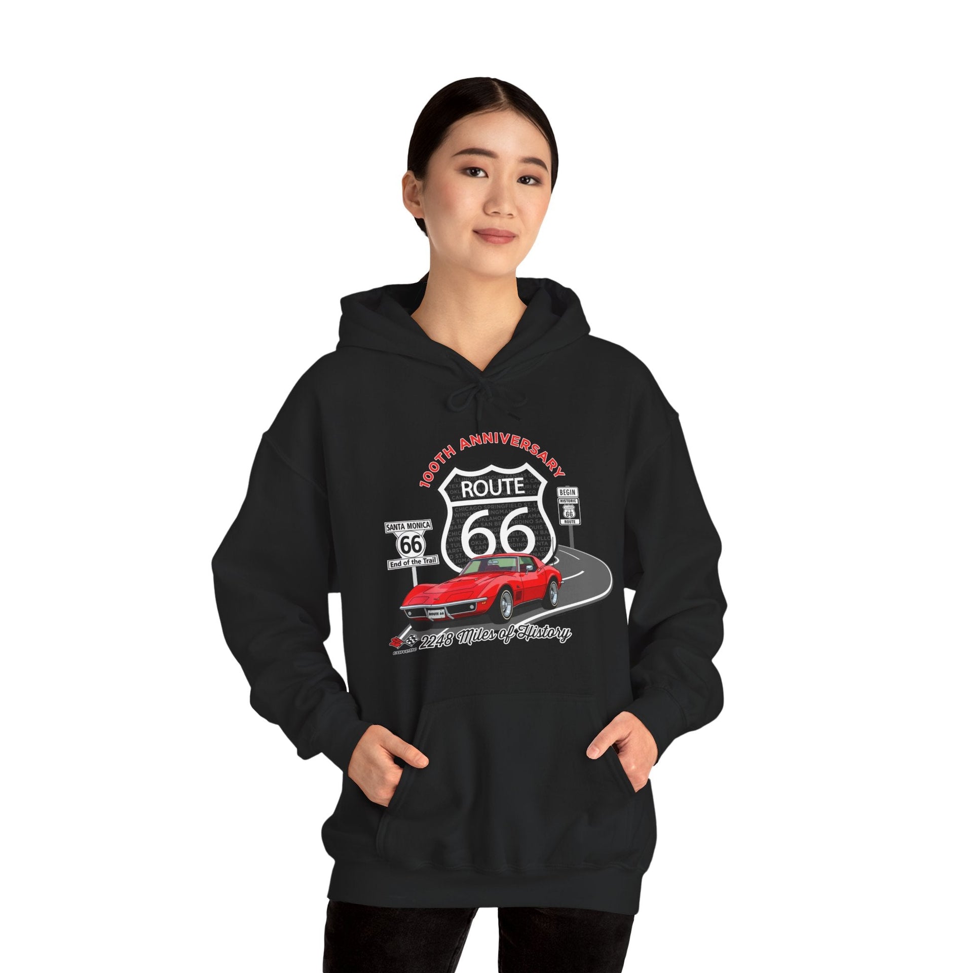 C3 Corvette Route 66 100th Anniversary Hooded Sweatshirt – Legends of the Road, Perfect for the Corvette Fan
