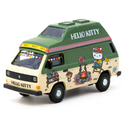 Brand new 1/64 scale diecast car model of Volkswagen T3 Van "Hello Kitty Camping" Green and Beige with Graphics "Collab64" Series diecast model car by Schuco & Tarmac Works.