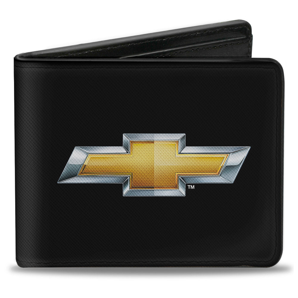 This awesome men's bi-fold wallet is made from premium vegan leather. It measures 4.0x3.5x0.5 Inches, and features the standard billfold, 5 card slots, and windowed ID holder. The logos are applied using advanced printing technologies, so the wallet will still look good after years of hard use. This product is made by Buckle-Down, Inc. and Officially Licensed by GM General Motors.