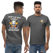 Fuel the fire of a car enthusiast’s passion with this bold Gearhead Racing Race Car Graphic Tee. Designed with a striking combination of fire and a skull, this tee shirt captures the essence of high-speed adrenaline. Emblazoned with the phrase 'There's No Such Thing As Too Much Horsepower', it speaks directly to the soul of anyone who lives and breathes cars, be it turbo, diesel, JDM, or drag racing. This t-shirt is not just a garment; it's a statement for those who believe in the thrill of speed and the roar of an engine.