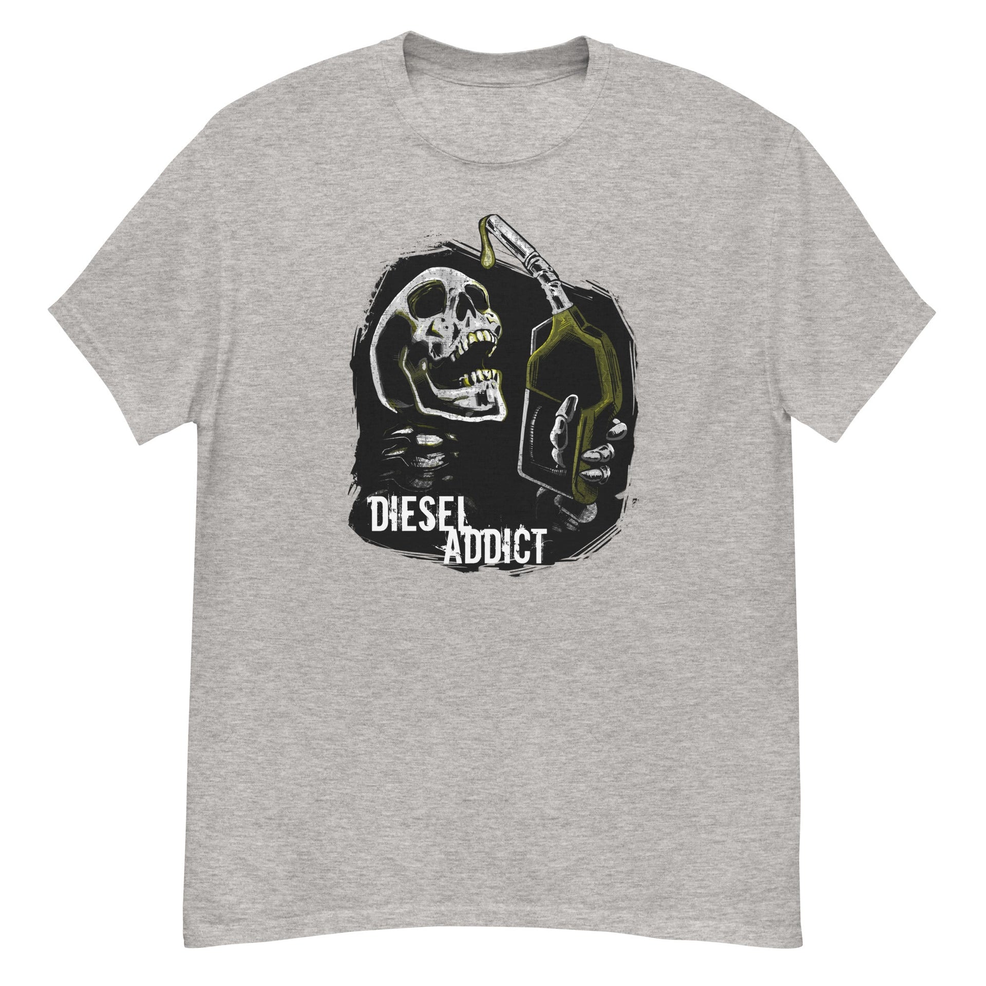 Our Diesel Addicts Shirt is the ultimate statement piece for those who live and breathe diesel. This truck T-Shirt goes beyond mere fashion; it's a bold declaration of your dedication to the diesel lifestyle. Featuring an edgy design with a skeleton savoring every drop from a diesel pump, coupled with the unapologetic proclamation "DIESEL ADDICT," this shirt is tailor-made for those who find their adrenaline rush in the roar of a diesel engine.